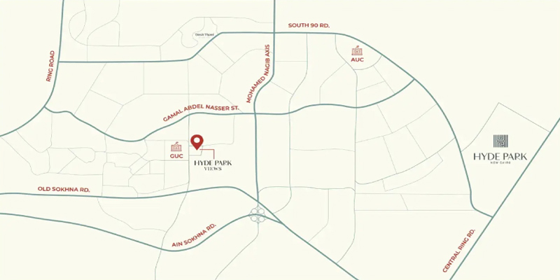 At the heart of the 5th settlement, specifically on Gamal Abd El-Nasser Axis, Hyde Park Developments chose to lay the foundation of a new residential project, Hyde Park Views New Cairo. As this location means residents are going to be connected to many places, especially the main roads, axes, besides the most visited places, For Example: