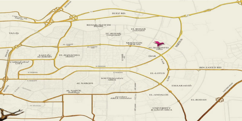 One of the most impressive features of Kin New Cairo is its strategic location in Qoronfol area at the heart of the Fifth Settlement. This area is one of the most elegant and fast-growing districts in East Cairo, making it a perfect choice for both homeowners and investors. Imarrae Developments chose this location carefully to ensure residents enjoy easy access to all major destinations without wasting time in traffic. Thanks to its central position, you can reach several key spots within minutes: